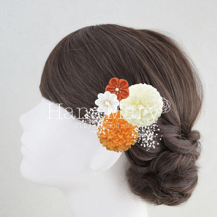 HanaMaryの髪飾りは生花をリアルに再現したアートフラワーと呼ばれるハイクオリティーな造花を使用しています。耐久性に優れ、成人式・卒業式やウェディングなどに何度でも繰り返し使用することができます。