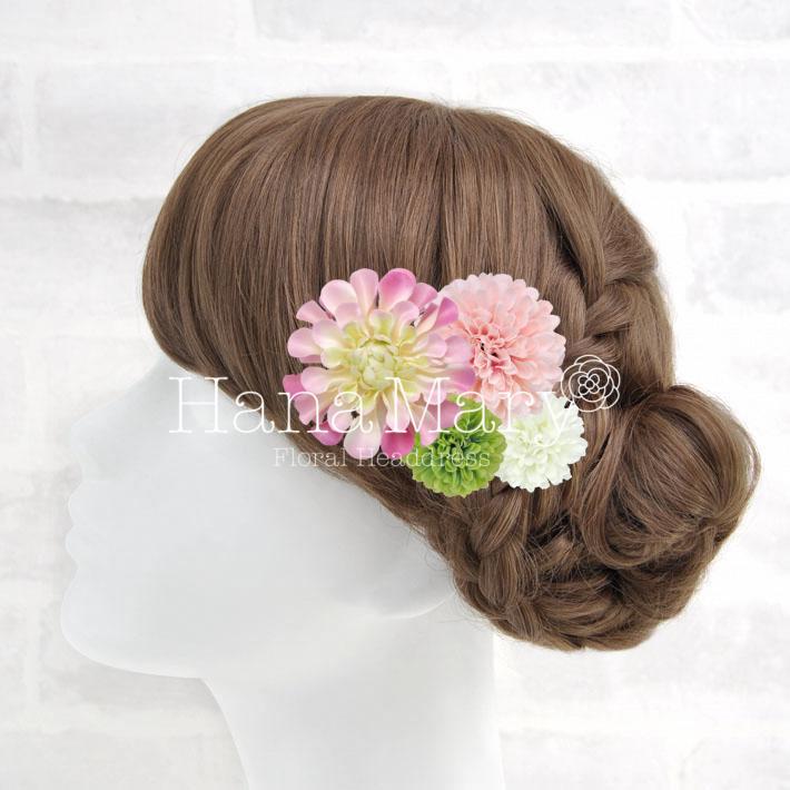 その日のヘアスタイルによって自由に一輪一輪配置できます。お花の数が多い場合でも、アメピンを追加して簡単にしっかりと固定できます。