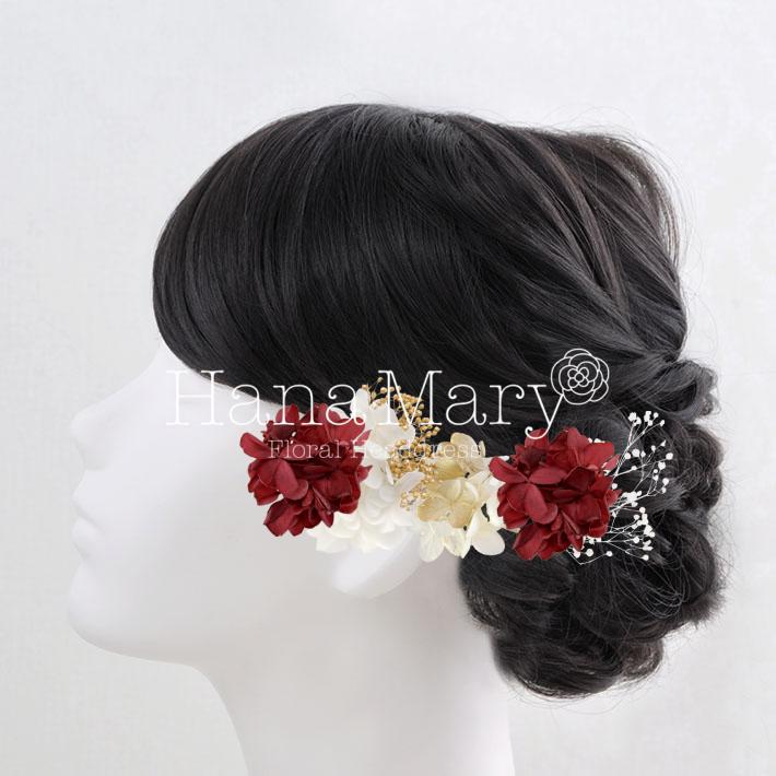 HanaMaryの髪飾りは生花をリアルに再現したアートフラワーと呼ばれるハイクオリティーな造花を使用しています。耐久性に優れ、成人式・卒業式やウェディングなどに何度でも繰り返し使用することができます。