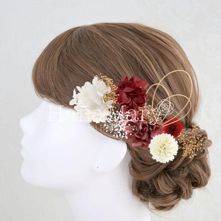 HanaMaryの髪飾りは生花をリアルに再現したアートフラワーと呼ばれるハイクオリティーな造花を使用しています。耐久性に優れ、成人式・卒業式やウェディングなどに何度でも繰り返し使用することができます。