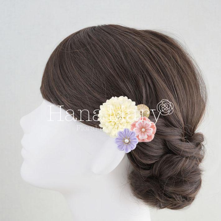 HanaMaryの髪飾りは生花をリアルに再現したアートフラワーと呼ばれるハイクオリティーな造花を使用しています。耐久性に優れ、成人式・卒業式やウェディングなどに何度でも繰り返し使用することができます。