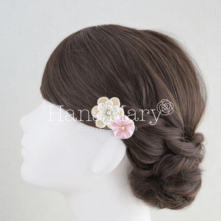 その日のヘアスタイルによって自由に一輪一輪配置できます。お花の数が多い場合でも、アメピンを追加して簡単にしっかりと固定できます。