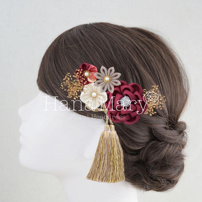HanaMaryの髪飾りは生花をリアルに再現したアートフラワーと呼ばれるハイクオリティーな造花を使用しています。耐久性に優れ、成人式・卒業式やウェディングなどに何度でも繰り返し使用することができます。