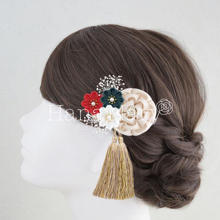 HanaMaryの髪飾りは生花をリアルに再現したアートフラワーと呼ばれるハイクオリティーな造花を使用しています。耐久性に優れ、成人式・卒業式やウェディングなどに何度でも繰り返し使用することができます。