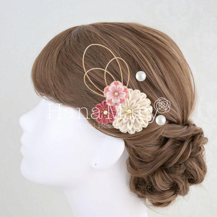 その日のヘアスタイルによって自由に一輪一輪配置できます。お花の数が多い場合でも、アメピンを追加して簡単にしっかりと固定できます。
