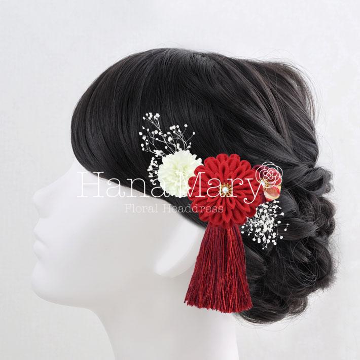 HanaMaryの髪飾りは生花をリアルに再現したアートフラワーと呼ばれるハイクオリティーな造花を使用しています。耐久性に優れ、成人式・卒業式やウェディングなどに何度でも繰り返し使用することができます。
