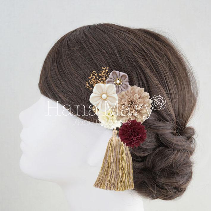 HanaMaryの髪飾りは生花をリアルに再現したアートフラワーと呼ばれるハイクオリティーな造花を使用しています。耐久性に優れ、成人式・卒業式やウェディングなどに何度でも繰り返し使用することができます。