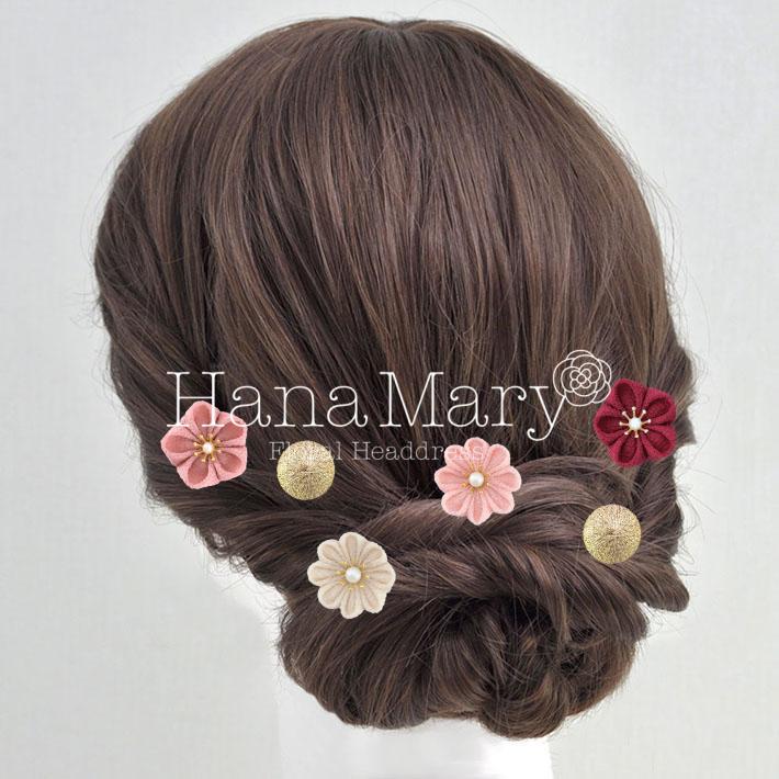 その日のヘアスタイルによって自由に一輪一輪配置できます。お花の数が多い場合でも、アメピンを追加して簡単にしっかりと固定できます。