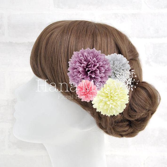 その日のヘアスタイルによって自由に一輪一輪配置できます。お花の数が多い場合でも、アメピンを追加して簡単にしっかりと固定できます。