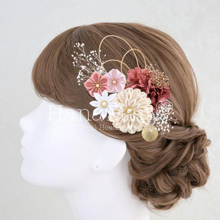 HanaMaryの髪飾りは生花をリアルに再現したアートフラワーと呼ばれるハイクオリティーな造花を使用しています。耐久性に優れ、成人式・卒業式やウェディングなどに何度でも繰り返し使用することができます。