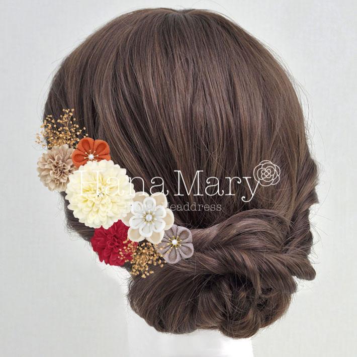 HanaMaryの髪飾りは生花をリアルに再現したアートフラワーと呼ばれるハイクオリティーな造花を使用しています。耐久性に優れ、成人式・卒業式やウェディングなどに何度でも繰り返し使用することができます。