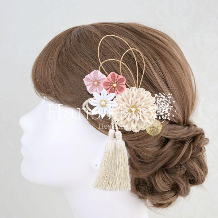 HanaMaryの髪飾りは生花をリアルに再現したアートフラワーと呼ばれるハイクオリティーな造花を使用しています。耐久性に優れ、成人式・卒業式やウェディングなどに何度でも繰り返し使用することができます。