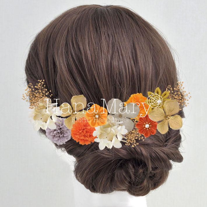 HanaMaryの髪飾りは生花をリアルに再現したアートフラワーと呼ばれるハイクオリティーな造花を使用しています。耐久性に優れ、成人式・卒業式やウェディングなどに何度でも繰り返し使用することができます。