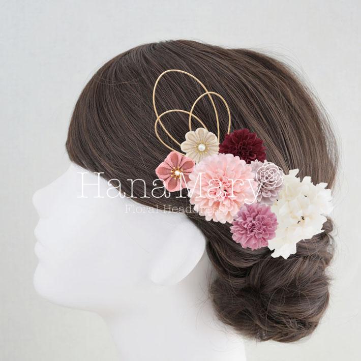 その日のヘアスタイルによって自由に一輪一輪配置できます。お花の数が多い場合でも、アメピンを追加して簡単にしっかりと固定できます。