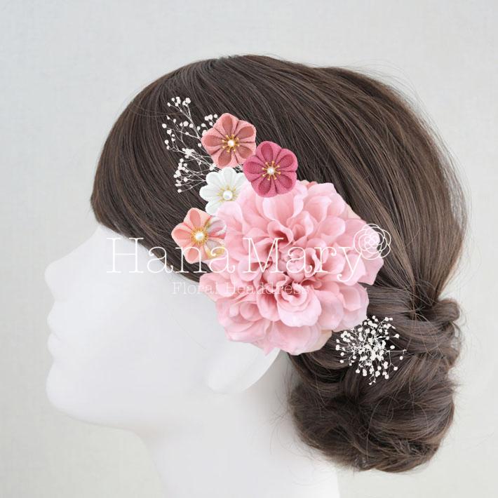 HanaMaryの髪飾りは生花をリアルに再現したアートフラワーと呼ばれるハイクオリティーな造花を使用しています。耐久性に優れ、成人式・卒業式やウェディングなどに何度でも繰り返し使用することができます。