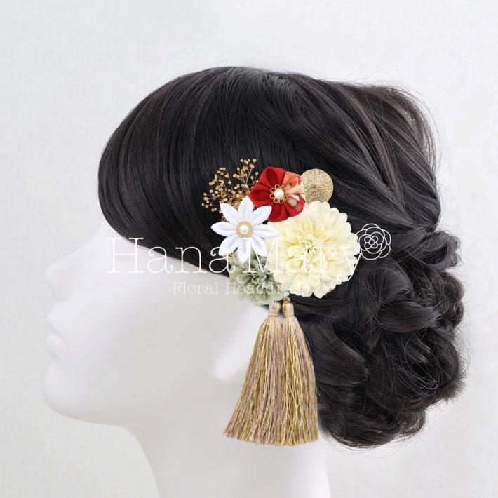 HanaMaryの髪飾りは生花をリアルに再現したアートフラワーと呼ばれるハイクオリティーな造花を使用しています。耐久性に優れ、成人式・卒業式やウェディングなどに何度でも繰り返し使用することができます。