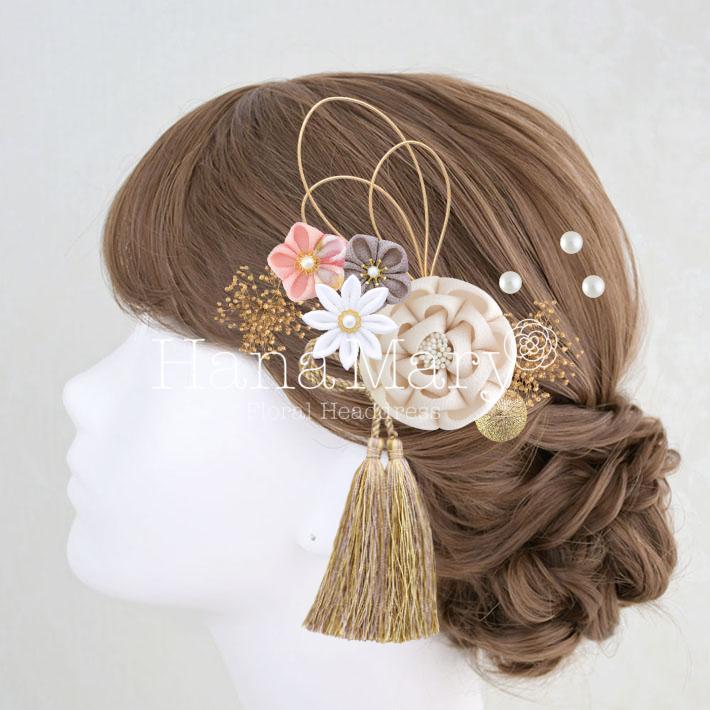 HanaMaryの髪飾りは生花をリアルに再現したアートフラワーと呼ばれるハイクオリティーな造花を使用しています。耐久性に優れ、成人式・卒業式やウェディングなどに何度でも繰り返し使用することができます。