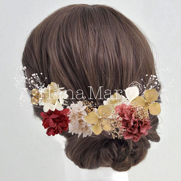 HanaMaryの髪飾りは生花をリアルに再現したアートフラワーと呼ばれるハイクオリティーな造花を使用しています。耐久性に優れ、成人式・卒業式やウェディングなどに何度でも繰り返し使用することができます。