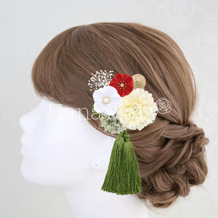 HanaMaryの髪飾りは生花をリアルに再現したアートフラワーと呼ばれるハイクオリティーな造花を使用しています。耐久性に優れ、成人式・卒業式やウェディングなどに何度でも繰り返し使用することができます。