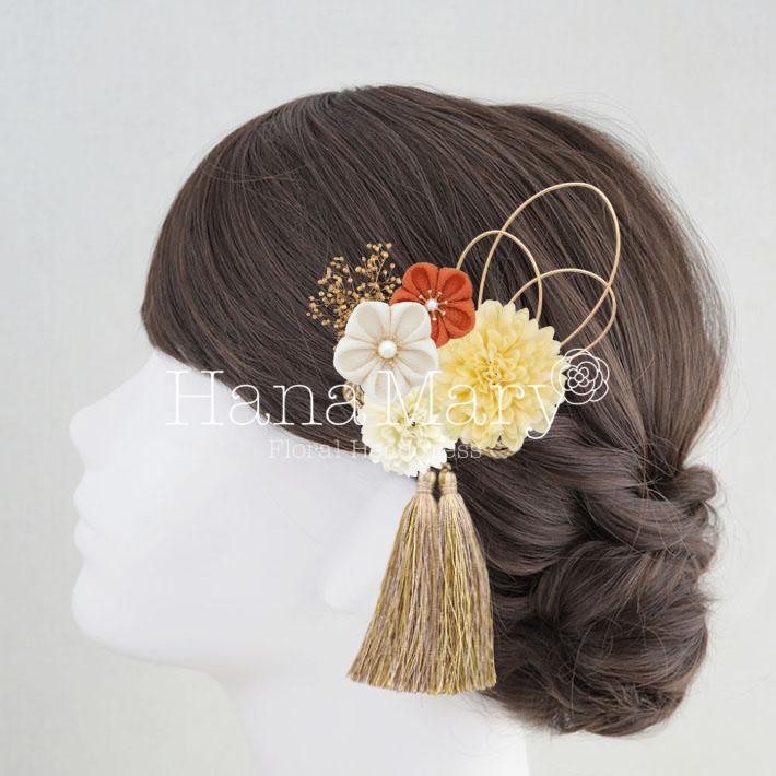 HanaMaryの髪飾りは生花をリアルに再現したアートフラワーと呼ばれるハイクオリティーな造花を使用しています。耐久性に優れ、成人式・卒業式やウェディングなどに何度でも繰り返し使用することができます。