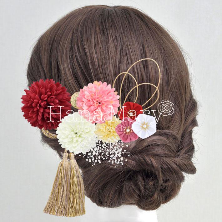 HanaMaryの髪飾りは生花をリアルに再現したアートフラワーと呼ばれるハイクオリティーな造花を使用しています。耐久性に優れ、成人式・卒業式やウェディングなどに何度でも繰り返し使用することができます。
