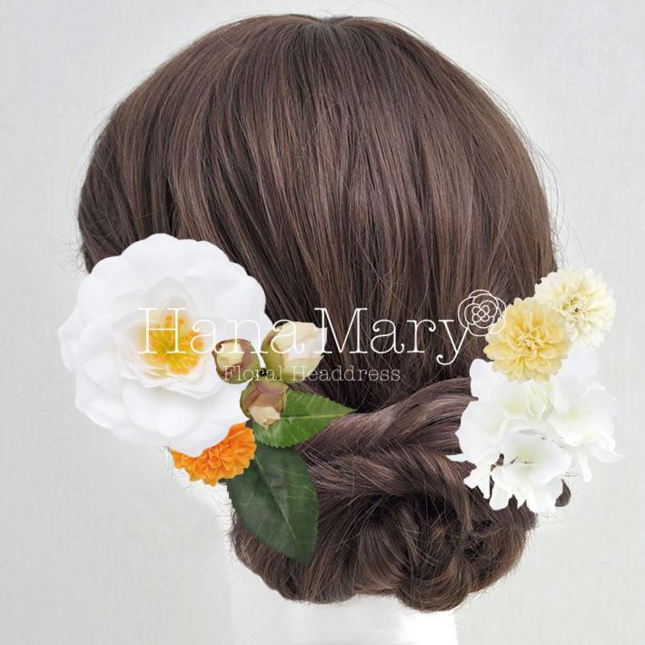 HanaMaryの髪飾りは生花をリアルに再現したアートフラワーと呼ばれるハイクオリティーな造花を使用しています。耐久性に優れ、成人式・卒業式やウェディングなどに何度でも繰り返し使用することができます。