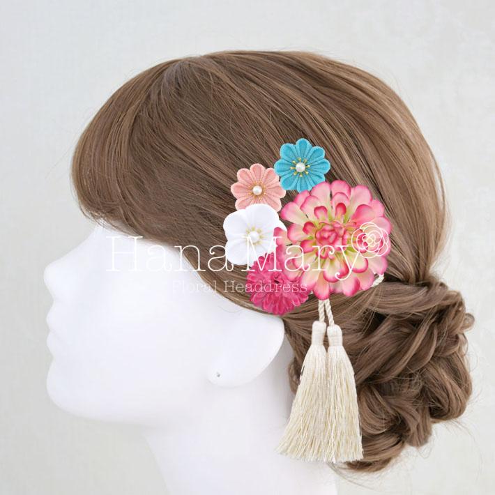 HanaMaryの髪飾りは生花をリアルに再現したアートフラワーと呼ばれるハイクオリティーな造花を使用しています。耐久性に優れ、成人式・卒業式やウェディングなどに何度でも繰り返し使用することができます。