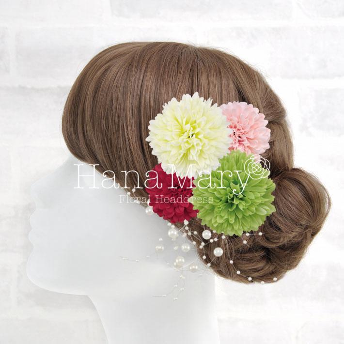 HanaMaryの髪飾りは生花をリアルに再現したアートフラワーと呼ばれるハイクオリティーな造花を使用しています。耐久性に優れ、成人式・卒業式やウェディングなどに何度でも繰り返し使用することができます。