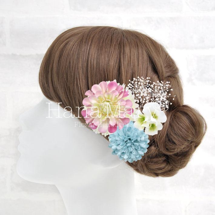 その日のヘアスタイルによって自由に一輪一輪配置できます。お花の数が多い場合でも、アメピンを追加して簡単にしっかりと固定できます。