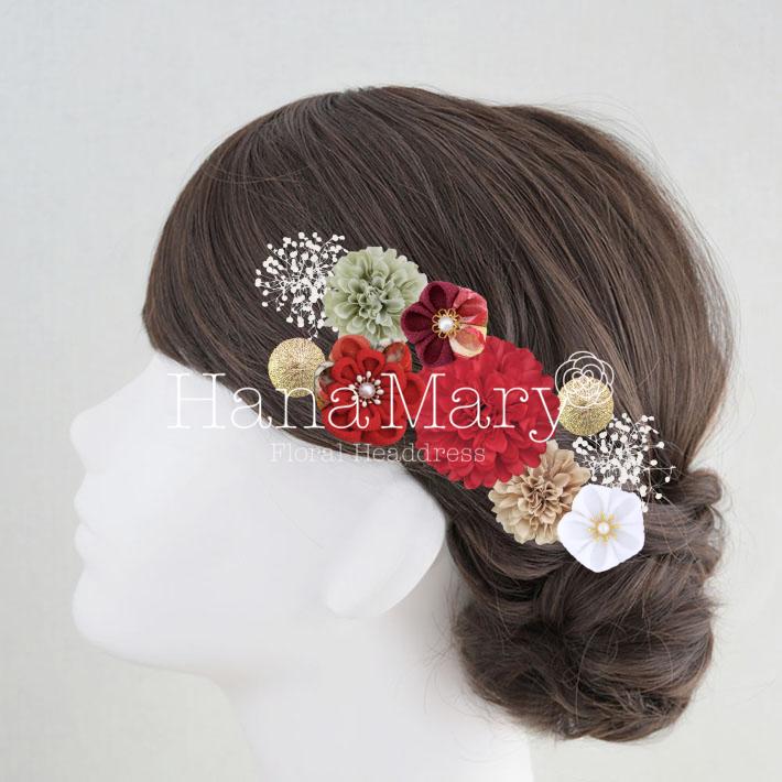 HanaMaryの髪飾りは生花をリアルに再現したアートフラワーと呼ばれるハイクオリティーな造花を使用しています。耐久性に優れ、成人式・卒業式やウェディングなどに何度でも繰り返し使用することができます。
