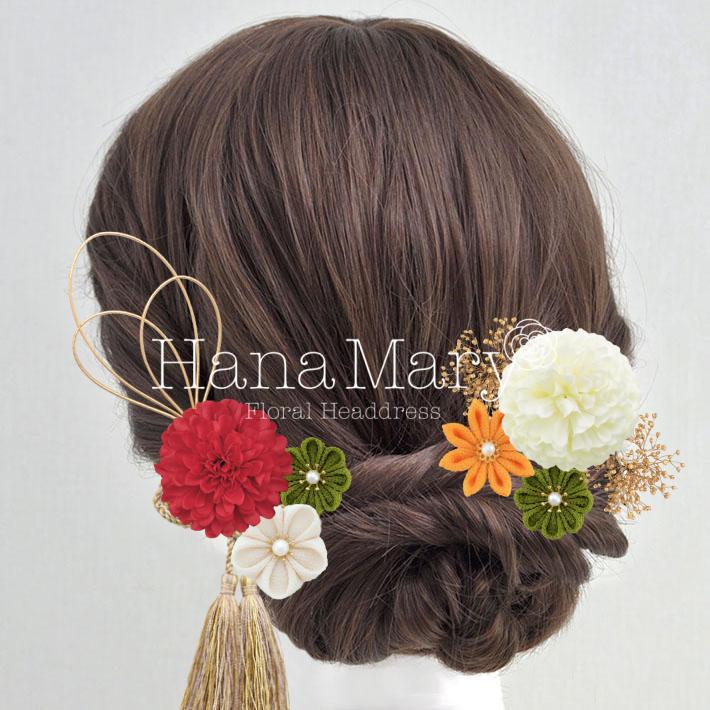 HanaMaryの髪飾りは生花をリアルに再現したアートフラワーと呼ばれるハイクオリティーな造花を使用しています。耐久性に優れ、成人式・卒業式やウェディングなどに何度でも繰り返し使用することができます。