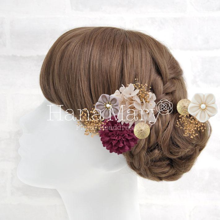 HanaMaryの髪飾りは生花をリアルに再現したアートフラワーと呼ばれるハイクオリティーな造花を使用しています。耐久性に優れ、成人式・卒業式やウェディングなどに何度でも繰り返し使用することができます。