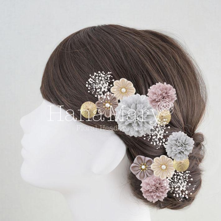 その日のヘアスタイルによって自由に一輪一輪配置できます。お花の数が多い場合でも、アメピンを追加して簡単にしっかりと固定できます。
