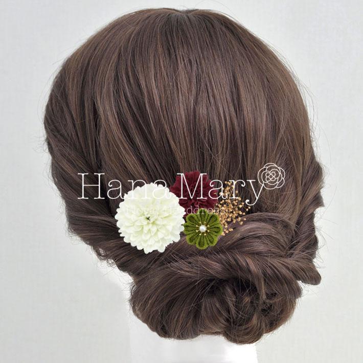 HanaMaryの髪飾りは生花をリアルに再現したアートフラワーと呼ばれるハイクオリティーな造花を使用しています。耐久性に優れ、成人式・卒業式やウェディングなどに何度でも繰り返し使用することができます。