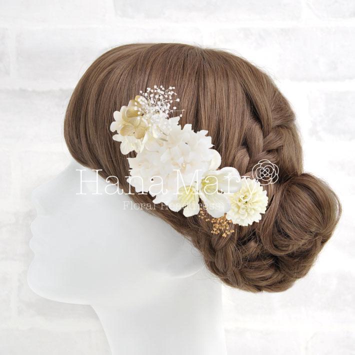 HanaMaryの髪飾りは生花をリアルに再現したアートフラワーと呼ばれるハイクオリティーな造花を使用しています。耐久性に優れ、成人式・卒業式やウェディングなどに何度でも繰り返し使用することができます。