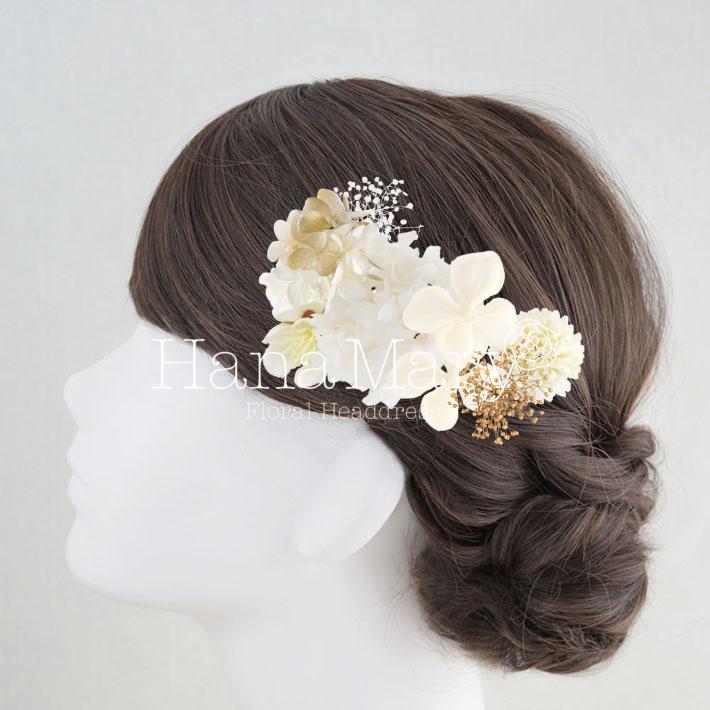 HanaMaryの髪飾りは生花をリアルに再現したアートフラワーと呼ばれるハイクオリティーな造花を使用しています。耐久性に優れ、成人式・卒業式やウェディングなどに何度でも繰り返し使用することができます。