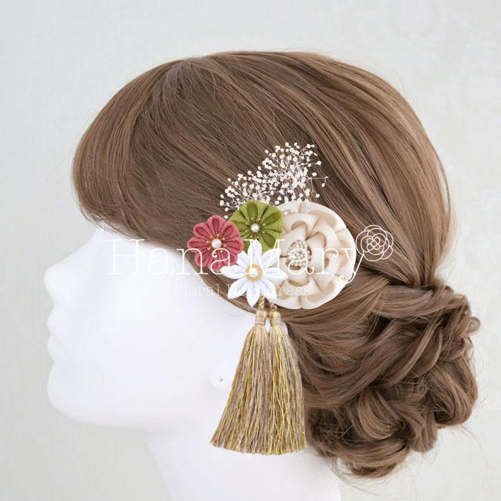 HanaMaryの髪飾りは生花をリアルに再現したアートフラワーと呼ばれるハイクオリティーな造花を使用しています。耐久性に優れ、成人式・卒業式やウェディングなどに何度でも繰り返し使用することができます。