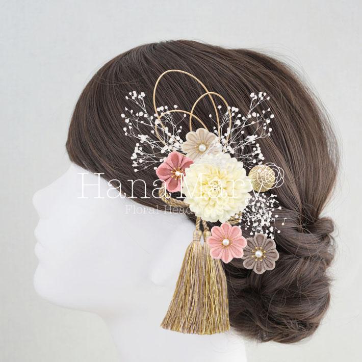 HanaMaryの髪飾りは生花をリアルに再現したアートフラワーと呼ばれるハイクオリティーな造花を使用しています。耐久性に優れ、成人式・卒業式やウェディングなどに何度でも繰り返し使用することができます。