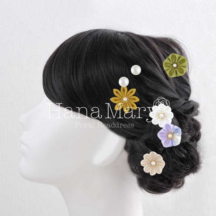 その日のヘアスタイルによって自由に一輪一輪配置できます。お花の数が多い場合でも、アメピンを追加して簡単にしっかりと固定できます。
