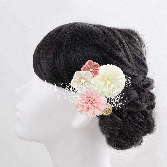 HanaMaryの髪飾りは生花をリアルに再現したアートフラワーと呼ばれるハイクオリティーな造花を使用しています。耐久性に優れ、成人式・卒業式やウェディングなどに何度でも繰り返し使用することができます。