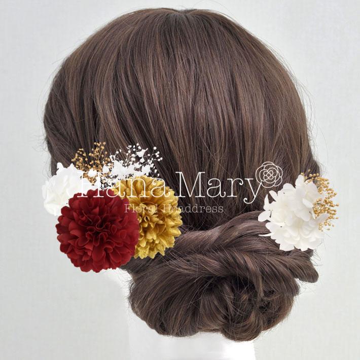 HanaMaryの髪飾りは生花をリアルに再現したアートフラワーと呼ばれるハイクオリティーな造花を使用しています。耐久性に優れ、成人式・卒業式やウェディングなどに何度でも繰り返し使用することができます。