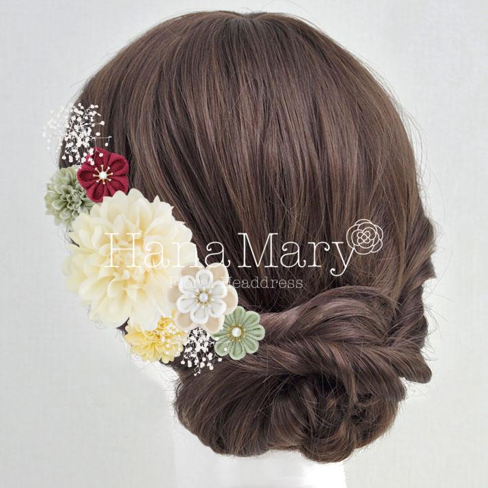HanaMaryの髪飾りは生花をリアルに再現したアートフラワーと呼ばれるハイクオリティーな造花を使用しています。耐久性に優れ、成人式・卒業式やウェディングなどに何度でも繰り返し使用することができます。