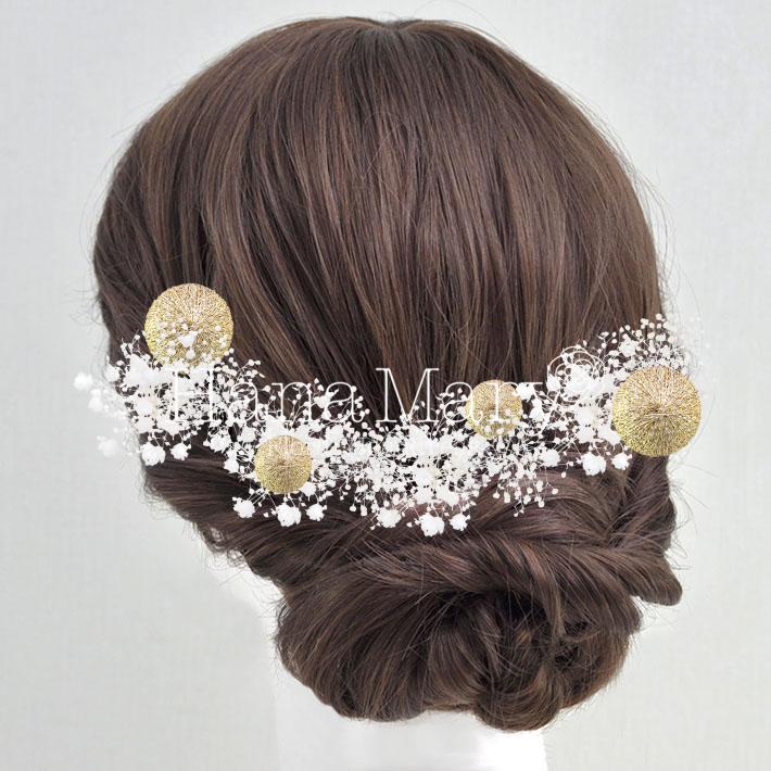 その日のヘアスタイルによって自由に一輪一輪配置できます。お花の数が多い場合でも、アメピンを追加して簡単にしっかりと固定できます。