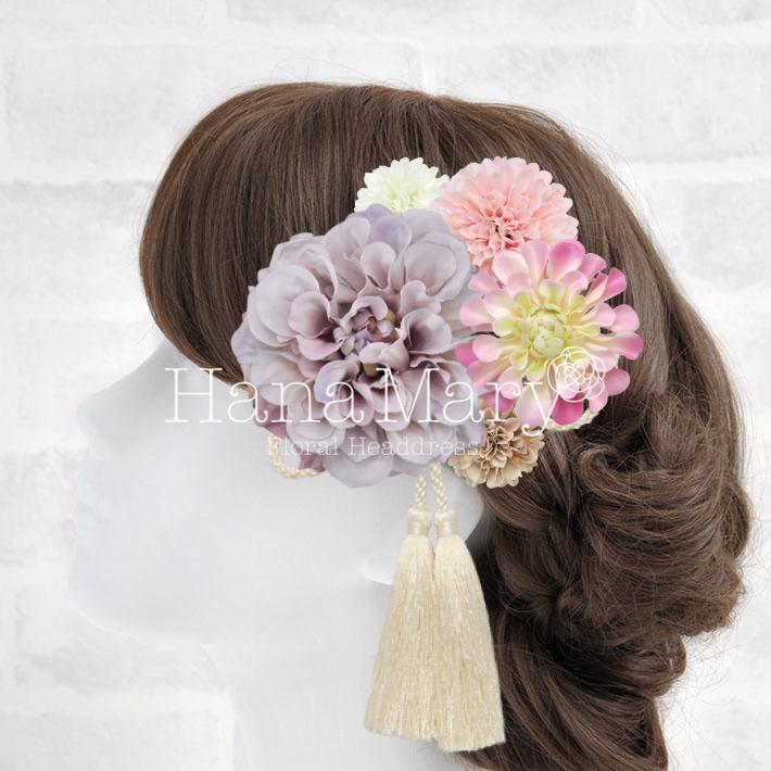 HanaMaryの髪飾りは生花をリアルに再現したアートフラワーと呼ばれるハイクオリティーな造花を使用しています。耐久性に優れ、成人式・卒業式やウェディングなどに何度でも繰り返し使用することができます。