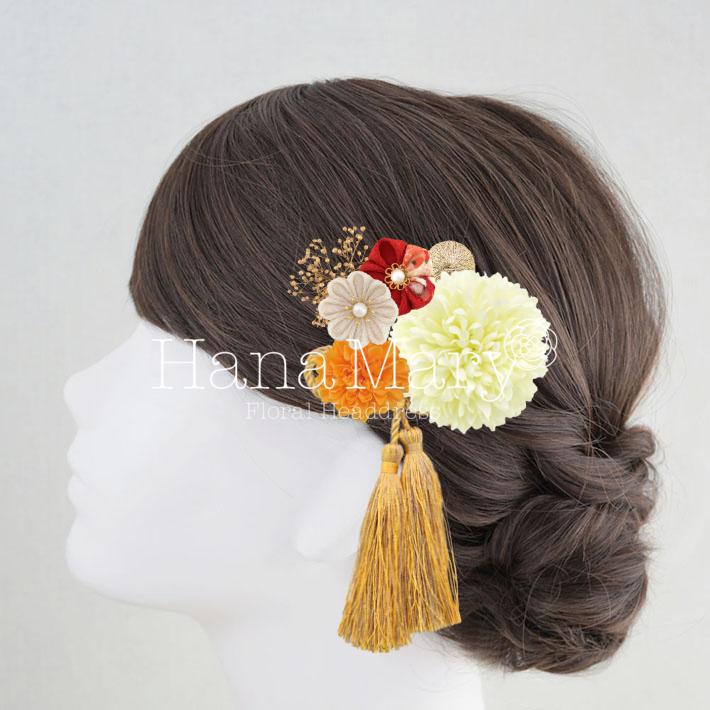 HanaMaryの髪飾りは生花をリアルに再現したアートフラワーと呼ばれるハイクオリティーな造花を使用しています。耐久性に優れ、成人式・卒業式やウェディングなどに何度でも繰り返し使用することができます。