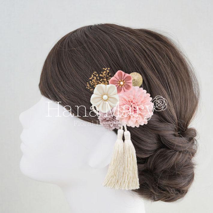 HanaMaryの髪飾りは生花をリアルに再現したアートフラワーと呼ばれるハイクオリティーな造花を使用しています。耐久性に優れ、成人式・卒業式やウェディングなどに何度でも繰り返し使用することができます。