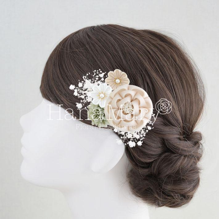 HanaMaryの髪飾りは生花をリアルに再現したアートフラワーと呼ばれるハイクオリティーな造花を使用しています。耐久性に優れ、成人式・卒業式やウェディングなどに何度でも繰り返し使用することができます。