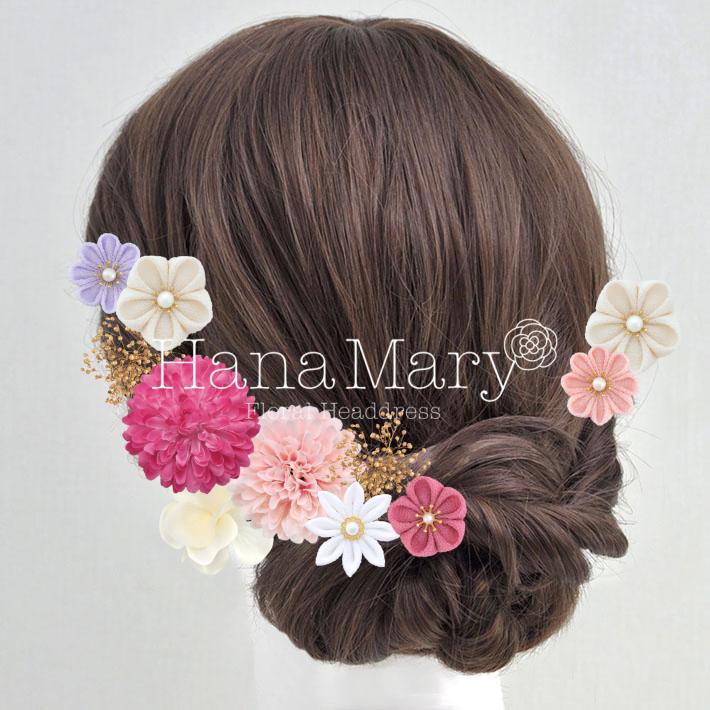 その日のヘアスタイルによって自由に一輪一輪配置できます。お花の数が多い場合でも、アメピンを追加して簡単にしっかりと固定できます。
