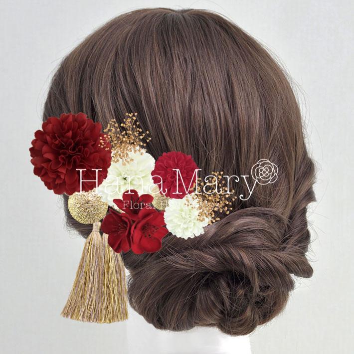 紅白の華やかな髪飾り☆