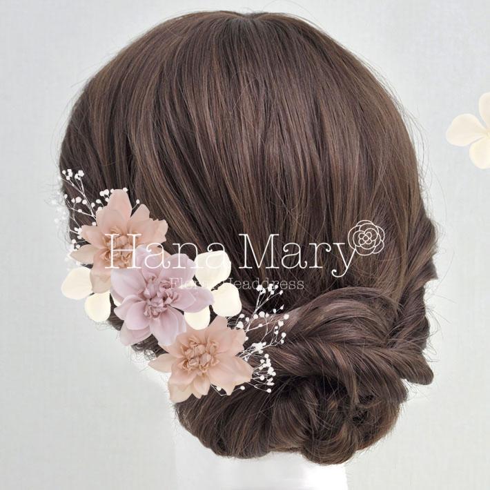 その日のヘアスタイルによって自由に一輪一輪配置できます。お花の数が多い場合でも、アメピンを追加して簡単にしっかりと固定できます。